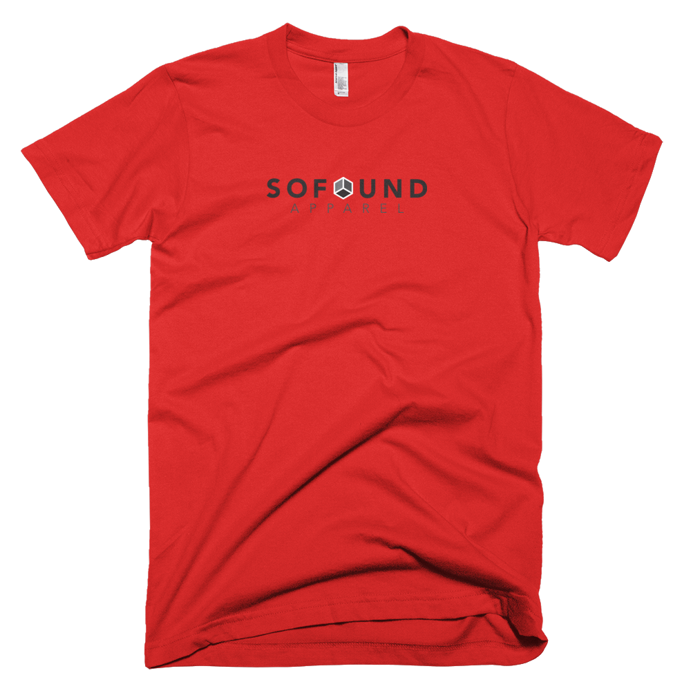 Our new Logo Tee with our updated and more minimal logo centered on a red American Apparel 2001 blank.